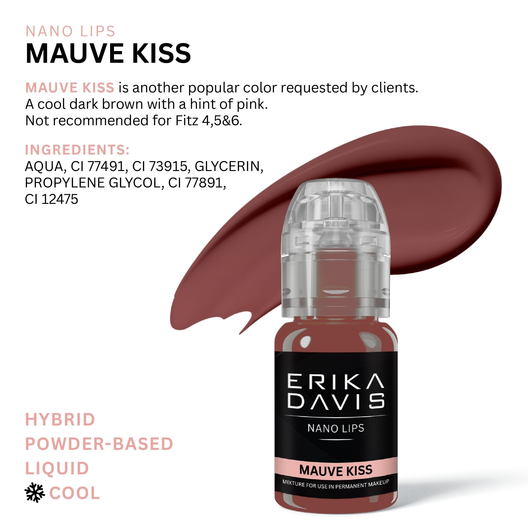 In addition to lip work, Mauve Kiss is perfectly suited for eyeliner and Pixel eyeshadow procedures, offering depth, definition, and long-lasting intensity. Not recommended for Fitz 4,5&6. |